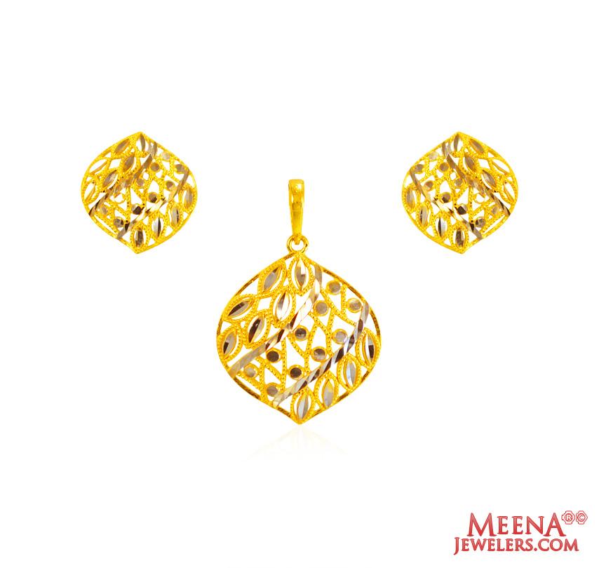 The 22Kt Pure Gold Two Tone Pendant Set features an exquisite design combining a rich gold finish with elegant rhodium accents. Its intricate laser work reflects the artistry of Moroccan Turkish style, making it a standout piece. Lightweight yet sophisticated, this pendant set complements a variety of outfits and is suitable for any occasion.