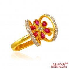 22Kt Gold CZ and Colored Stone Ring